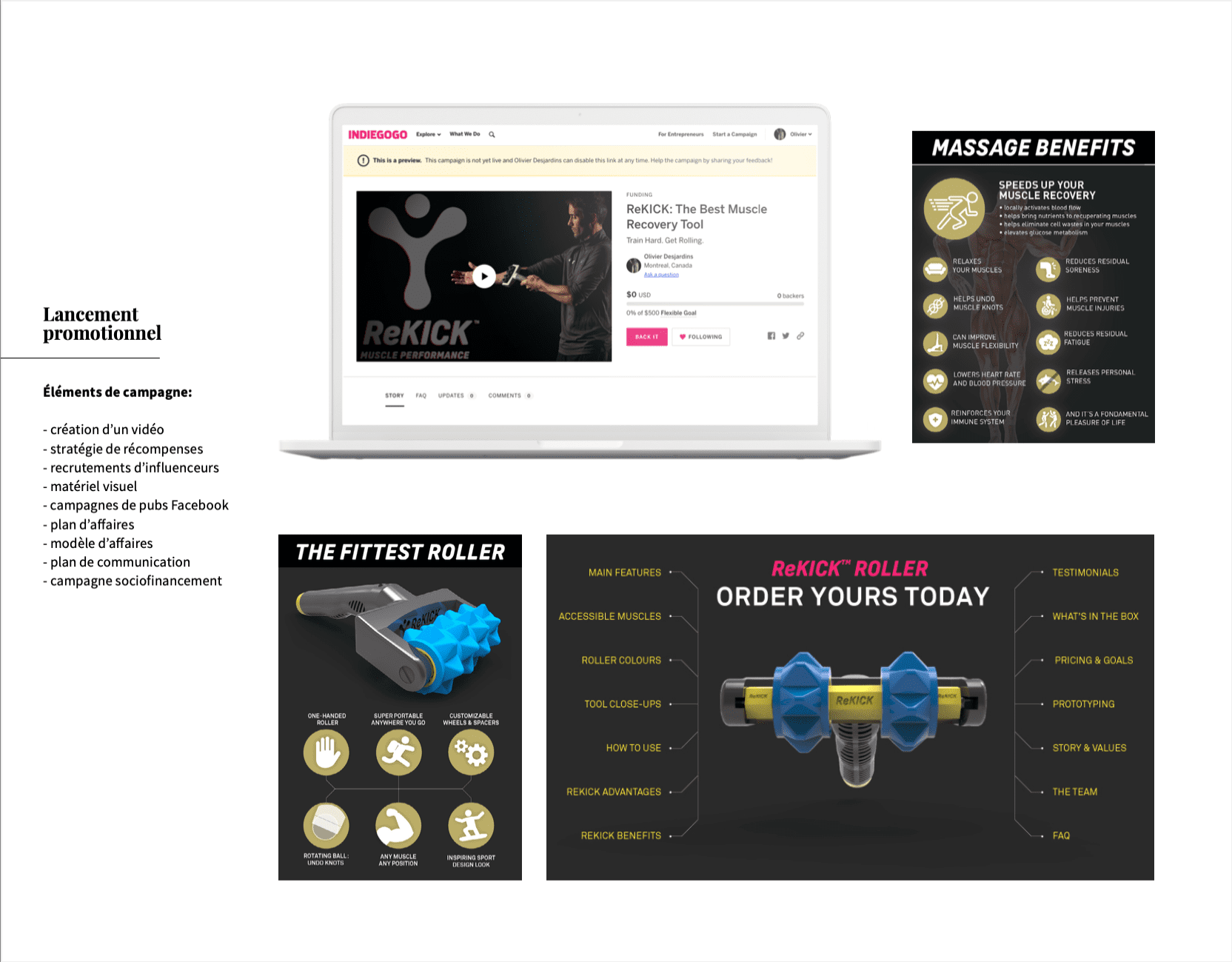 Invention, conception, design industriel, stratégie de marque, identité visuelle, site web et plan de mise en marché de l’outil de récupération ReKICK, gestion des propriétés intellectuelles, préparation d’une campagne de lancement en sociofinancement, réalisation de la vidéo promotionnelle.